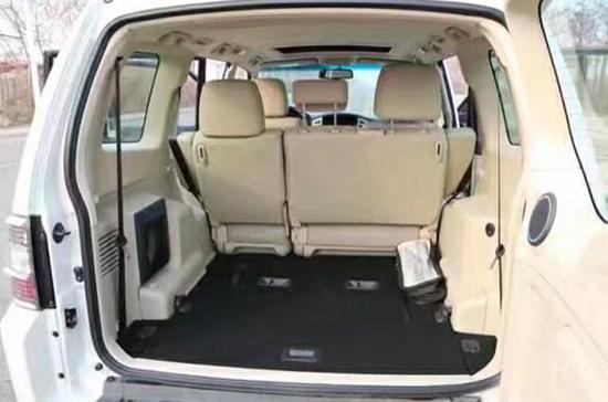 三菱帕杰罗V97也有真皮座椅和桃木内饰,中控台上也不乏镀铬装饰,但总体设计确实有些老旧。帕杰罗是5门7座设置,因为后挂备胎的原因,后尾门为平开式,第三排座椅可以完全折叠,隐藏在地板上,得到一个平整的后备箱空间。