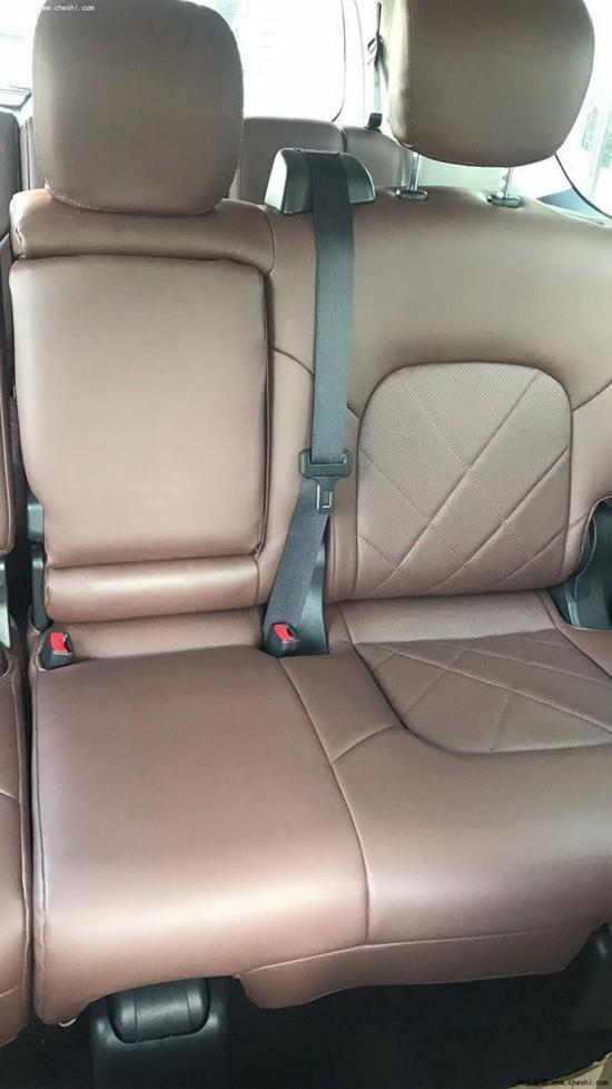 内饰更加不会让你失望:日产尼桑途乐内饰兼具了舒适性和功能性,仍然为三排座车型,内饰材质也更加的考究,使用了皮革,中控部分的设计比较具有豪华感,标准日系豪华车的风格,BOSE 音响是很多中高端车所选用的,音响效果不会让你失望。尼桑途乐 Y62 的内部做工采用大范围真皮包裹和木纹面板装饰,并以金属饰条点缀。方向盘较大,但是握感还是很舒适的,越野中不会拖你后腿。黑底白字的仪表显示清晰,行车电脑可以显示丰富的行车信息。