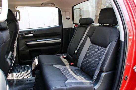 18款丰田坦途SR5TRD宽大的车身让坦途的内部空间显得有些奢侈,不管是前排还是后排空间,都给予让驾乘者尽情施展的空间,这不仅仅是庞大的车身尺寸带来的这种视觉压迫感,更多是来源于肌肉感十足的前脸,尾部的设计相对前脸还是低调了些,如果不是庞大的身躯,路上远远看见你不会觉得它有多么的稀奇,整个尾部比较低调厚实。