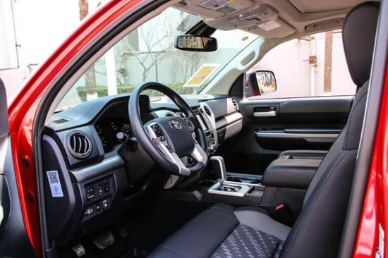 18款丰田坦途SR5TRD的内饰设计风格感觉比较熟悉,依旧是宽大的中控台搭配各种大尺寸按键、旋钮的组合,配色方面采用深灰色与浅灰色搭配为主,可以很清楚的发现驾驶员一侧的色调以浅色调为主,作为一款皮卡,坦途内饰的用料和做工明显有过于“豪放”之嫌,中控台大面积的硬塑料材质说明它还是一款实用性至上的车型。