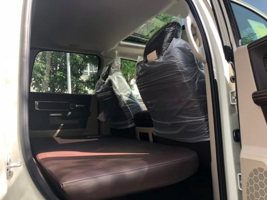 17款道奇公羊1500豪华版5.7中央扶手箱是一个极其宽大的、运动座椅所带来的包裹性要比不同座椅好很多,中间乘客同样拥有头枕,后排座椅支持90°向上掀起,后排座椅在掀起后另有玄机!座椅下方配有折叠板,在必要的时候可以支成一张单人床板,这无疑令人眼前一亮奇点,道奇公羊豪华版的内部设计依旧肌肉感十足,完全采用了美式硬派风格。