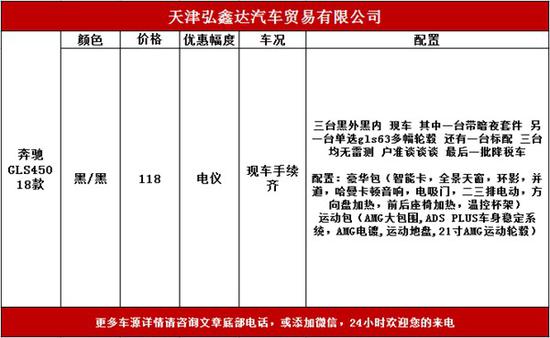 18款奔驰GLS450配有铝合金行李架,车门带有无钥匙进入功能,而且四个门把手都支持解锁/上锁,双幅飞翼式镀铬条幅横贯进气格栅,并进行了镂空设计,下进气格栅的镀铬装饰面积加大,更具运动感。时尚动感的外观,奔驰大三角标,AMG运动大包围,