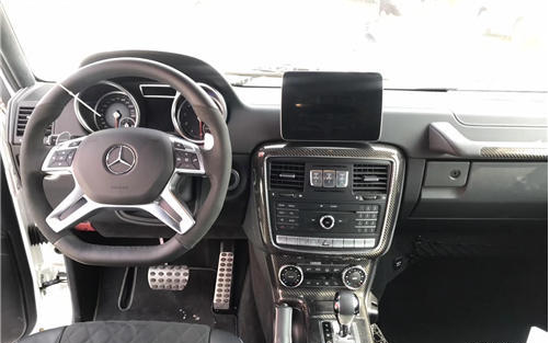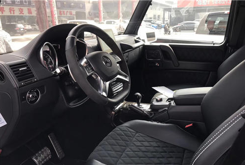 2017款版奔驰G500 4x4走进车内让人不禁忘记这是一辆外表强悍的SUV。奔驰G500多功能的方向盘设计、全新的中控台造型,以及带有320公里/小时记速器的仪表盘等等。另外,新的中控台还配备了一个新的齿轮旋钮和COMAND。 全面升级的G500 4x4车型几乎是将所有的驾驶特性都改变了,虽然不至于用“疯狂”来形容,但也绝对能刷新任何人的“世界观”。