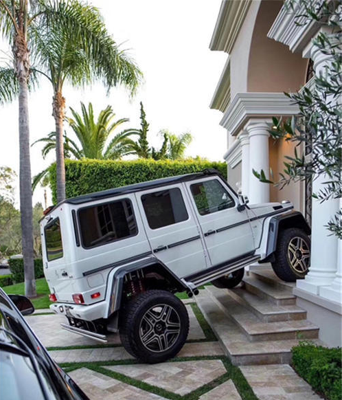 17款奔驰G500 4x4²透过巧手改造,打造出专属BRABUS的性能风味。打开车门,电动遥控踏板会自动伸出,否则以G500 4x4²达2300毫米的车高,上车就是一件苦力活。该辆G500 4x4²维持了黑色真皮重新包覆中控台、座椅及门板,甚且中控台及排档座皆采用了质感不凡的碳纤维材质饰板。