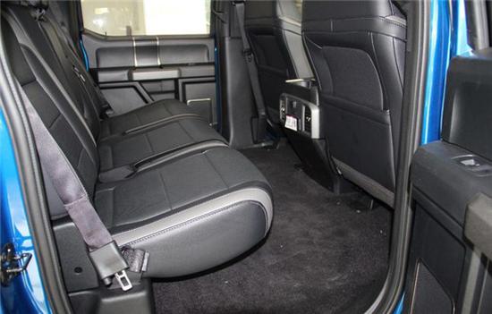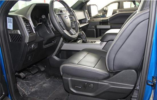 内饰方面,福特猛禽F150配备标准独特的皮革和布艺装饰的座椅,驾驶员侧的电动十向调节。这些座椅同时具备记忆功能。猛禽的内饰采用独特的中控台和门饰板面漆和真皮包裹的方向盘。