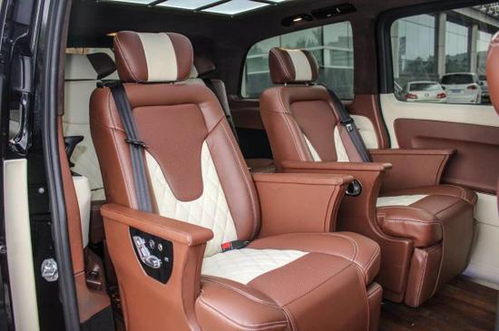 进口奔驰麦特斯商务车,全新三幅式设计方向盘,集成诸多实用性功能按键,中控台设计亦是可圈可点,极具现代美学享受,取消了独立液晶显示屏以及全新COMAND系统,取而代之的是大尺寸液晶显示屏和杯托,更加主打实用特性。功能区按键分门别类,规制有序,却也丝毫不显庞 杂,操作起来得心应手。
