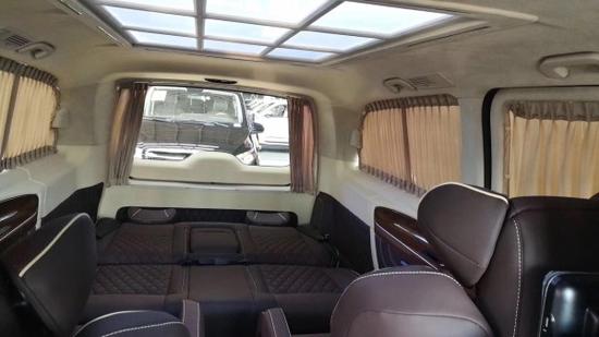 进口奔驰维特斯商务车,娱乐影音配备齐全,前舱蓝光DVD影碟机,吸顶高清液晶电视,需要时可以往下翻,按钮一按,最新热点、时尚资讯随时掌握。座椅旋转对坐,柚木地板上配置有可拆卸小方桌,时尚钢琴烤漆,高承重性,任意开启商务洽谈模式。后座三连排电动沙发座椅,向后拓展可一键平躺变身奢华大床,商务出行可作为休憩佳所;合家出游,便是小朋友的专属娱乐天地。进口奔驰维特斯商务车。