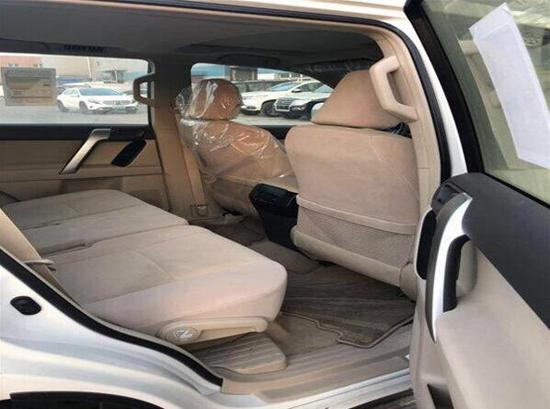 2018款丰田霸道2700九气囊外挂 配置:9气囊、6速、全时四驱、天窗、17铝轮(265/65R17)、150升大油箱、冰箱、定速巡航、多功能方向盘、小屏、(倒车影像显示在内后视镜)、七座丝绒座椅、司机座椅电动腰部支撑、两区自动空调、后排顶部出风口、黑色脚踏、备胎罩、后四雷达、卤素大灯、手动头灯、后雾灯、车身同色外后视镜/门把手、镀铬格栅、6喇叭、ABS+EBD、车身稳定系统、