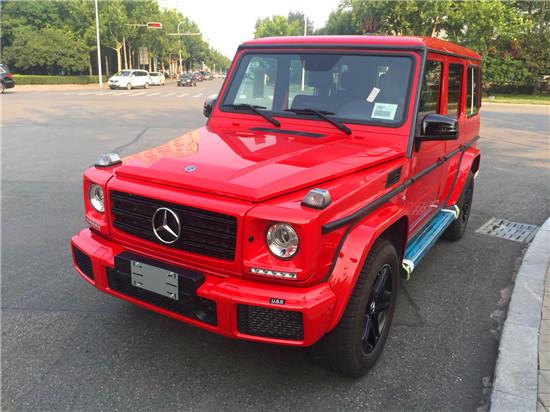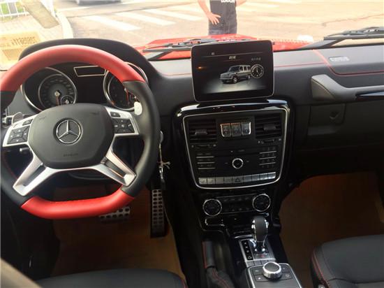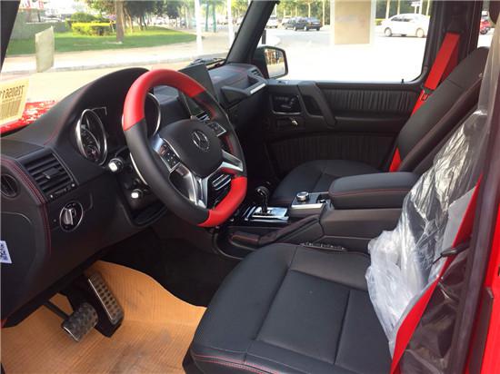 18款奔驰G500 配置:Desgino限量高亮漆,Desgino红色安全带,黑红双色Designo真皮方向盘,Designo设计真皮座椅,带红色缝线黑色真皮内饰,可调阻尼地盘,黑色限量套件(黑色进气隔珊,19寸AMG熏黑轮毂,黑色后视镜,黑色备胎罩等),Dinamica设计车顶,黑色钢琴漆内饰,不锈钢护杠,座椅舒适包(前排座椅通风),外观不锈钢包,内饰签名套件(独家包),运动包,负载保护包,镀铬包