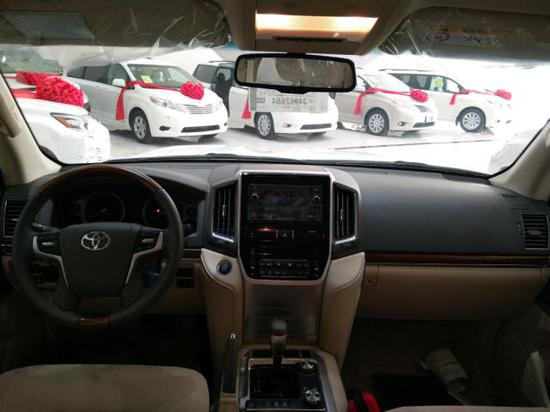酷路泽5700整个操控区域色调为深色系,仪表盘、方向盘和排挡等位置均配以桃木装点,尽显豪华质感。不但具有DVD导航,这款车的倒车影像还可以显示在内后视镜上;中央扶手箱还装备了冷藏箱,这些都与中规版车型有所不同。酷路泽5700车内看着更明亮、同时也更显豪华,更符合中国消费者对“豪华”的定义。