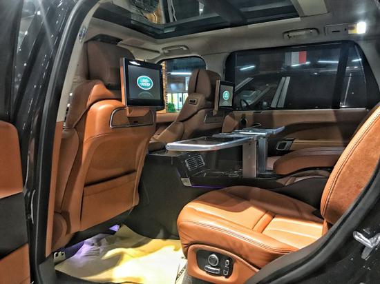 揽胜揽胜巅峰创世加长SV限量版内部采用了质感更加优异的金属拉丝饰板和实木装饰,并为后排乘客提供了两个带有腿部支撑功能的独立式座椅。