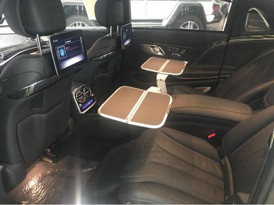 2018款迈巴赫S560 :黑/黑(黑色纳帕真皮顶棚)(黑色高级纳帕真皮内饰)(黑钢琴漆线条流畅木材)(柏林之声3D环绕音响系统)(专属四座包、延长皮革包)(迈巴赫20寸锻造轮毂)多功能桃木方向盘,主动式前后排座椅通风/加热/按摩功能,主动式忙点辅助系统、主动车道保持系统、智能领航限驱功能、环绕视图系统,夜视辅助系统,高性能轮胎