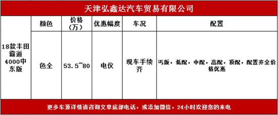 18款丰田霸道2700/4000主宰着丰田家族的又一辉煌历史,与都市精英一起,共创不一样的里程,共享不一样的精彩。霸道 4000调教的公路行驶性能相当不错,用事实证明着自己的越野情操。丰田霸道4000邓禄普的轮胎和新普拉多配合的简直是天衣无缝,轮胎抓地能力非常强。 V型6缸4.0升发动机,采用了DualVVT-i技术减少了燃油消耗水平。275马力的最大功率和381牛 ·米的动力参数,很是震撼、