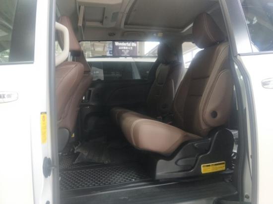 18款丰田塞纳四驱LE加规版七座限量特价抢购直击底价7座顶配配置:8速,全时四驱 , 18寸铝合金轮毂,7寸触摸屏,定速巡航,感应雨刷,三区空调,前雾灯,前后雷达,广角倒车影像,JBL音响,双天窗,原厂真皮座椅,前排座椅加热,智能卡,一键启动,主副驾驶电动座椅(主驾驶8项座椅调节带腰部支撑,副驾驶4项座椅调节),驾驶员座椅记忆,多功能方向盘,镀珞门把手,行李架,双侧电动门,电尾门, 二、三排手动遮阳帘,隐私玻璃,电动折叠后视镜带记忆,远光灯辅助,氙气大灯,LED灯,吸顶DVD,并道辅助。全新外观升级,全系增加TSS-P系统,360°环影