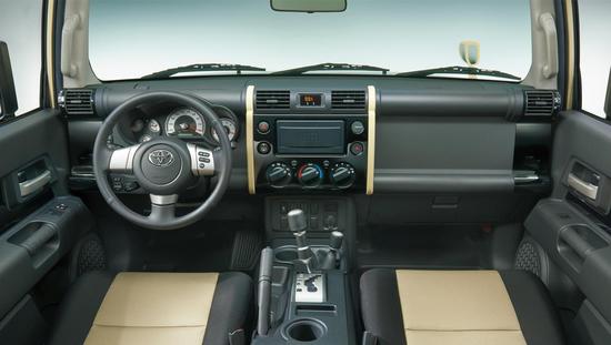 内饰与外观相对应,同样采用了黑色和米色的搭配,只不过对换成了黑色为主色调、米色为辅色调。新车内饰没有丝毫的拖泥带水,依旧摒弃了众多华而不实的装饰,最普通的三幅方向盘、最普通的原型仪表盘、最普通的配置按键,但却又都是最可靠的;驾驶者视野所到之处、轻松触及之处都是关乎车辆通过性的最实用按键——这也是FJ酷路泽的情怀所在。