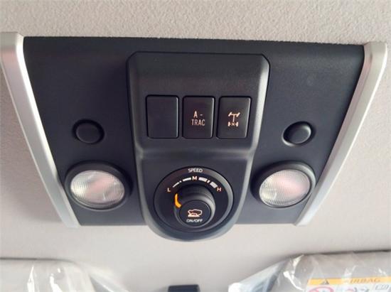 细 节 方 面:(上面2个图)值得一提的是,底盘部分的控制开关被设置在了顶部阅读灯之间,旋钮为爬行控制,其他两个按键分别是后部差速锁和主动牵引控制。