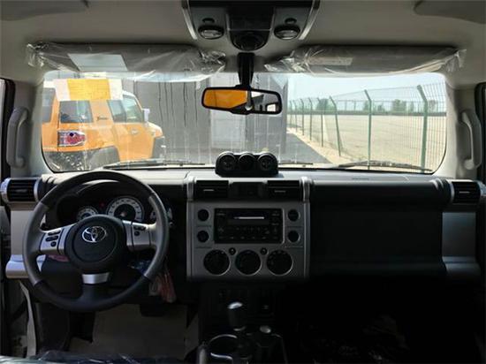 内 舱 方 面:18款丰田FJ酷路泽不仅拥有复古的外壳,内饰同样坚持来自上世纪的硬派设计。主驾及副驾前的装饰面板上下边缘的圆柱形设计使内部氛围多了一丝活泼,几乎全塑料的材质看起来有些简陋,中控面板采用与车身相同的米色设计,做为复古硬汉越野车,舒适度还算不错,承载了满满的情怀。