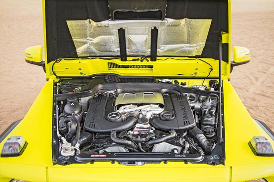 引擎盖下的发动机和普通的G550车型完全相同,双涡轮增压八缸发动机拥有416马力的最大功率和610N·m的峰值扭矩。当然,所以车迷都更期待6x6上的那台5.5升双涡轮增压的V8发动机。
