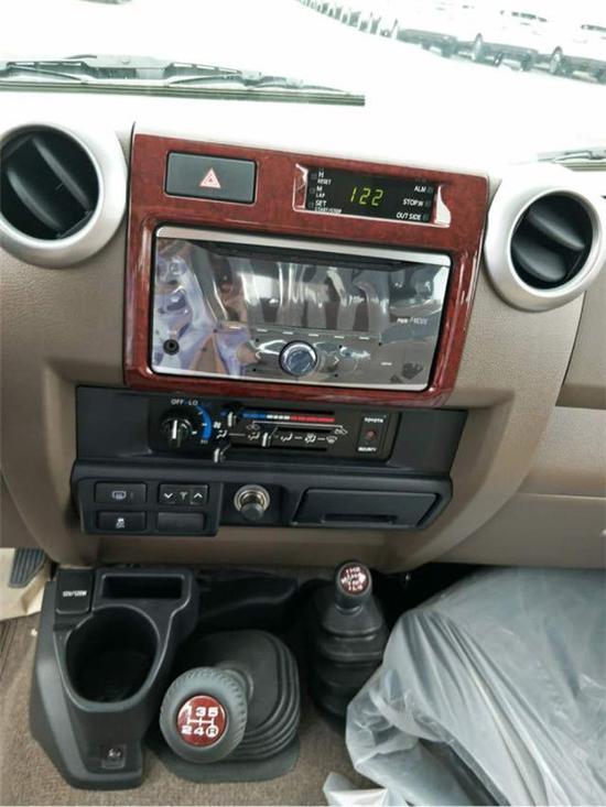 进口丰田LC76长宽高分别为:4080/1770/1935mm,轴距为2310mm,作为一款“原始”的越野车,几乎没有什么科技含量,这从中控台上的一些配置就可以看出,卡带播放器如今已是非常的稀有,拨杆式的空调调节也并不多见,唯一的科技产物应该是蓝牙电话系统吧。纯粹的坚守着越野本分,一切动力系统都是为越野所服务。钢板弹簧、前后硬轴的设计很简单,但最适合复杂路况,虽然车体很高,但是行驶稳定性是超乎你的预期的,真正的越野者之车。