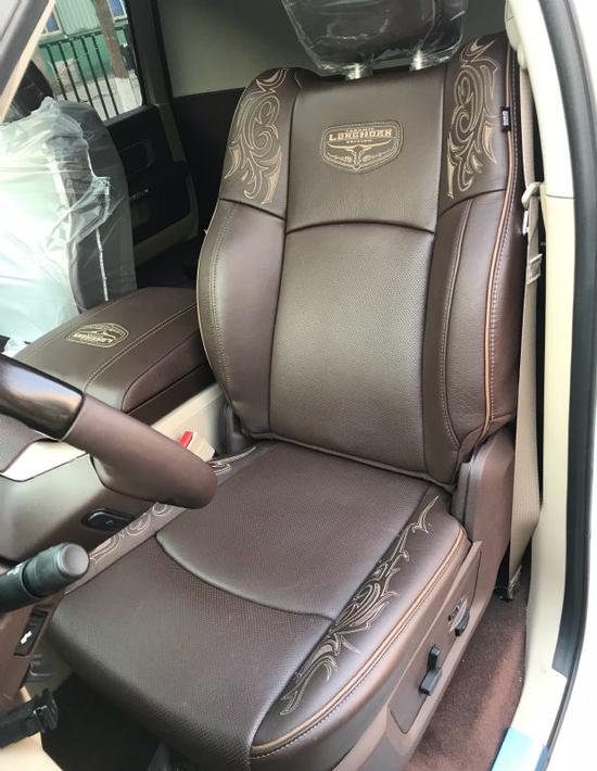 座椅方面:17款道奇公羊1500豪华版5.7在内部设计上还是延续了美式那种比较粗犷的风格,规整的中控台设计看上去比较死板,但丰富的配置会让你不由得为其称赞。公羊皮卡真皮座椅各自独立,配有加热、按摩等舒适功能,每个座椅独立配一个操控手柄,各项功能由乘坐者自己控制。道奇公羊皮卡车型全部座椅均采用真皮包裹,前排还配备了十分实用的运动座椅。