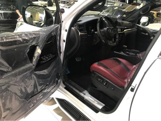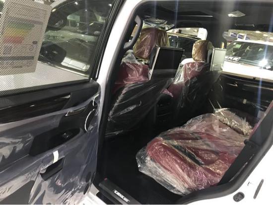 2018款雷克萨斯LX570限量版详细配置:金属漆 ,黑色限量款前中网 ,前后大包围 ,射地灯 ,21轮 ,遥控启动,车身防擦条, 流水式转向灯,外置拖钩,带运动底盘,运动模式,换挡拨片、车载冰箱、天窗、智能卡、前后电眼、360度环车影像、后排娱乐、底盘升降、前座椅通风加热 (真皮)、导航、桃木多功能方向盘、桃木内饰、铝制行李架、航空照明脚踏、LED 氙灯 大灯清洗、迎宾灯、四区空调、三排电动、电尾门、拖车钩、ACC自适应巡航、雷达测距、后座椅通风、车道保持、二排遮阳帘、抬头显示、马克莱文森音响。