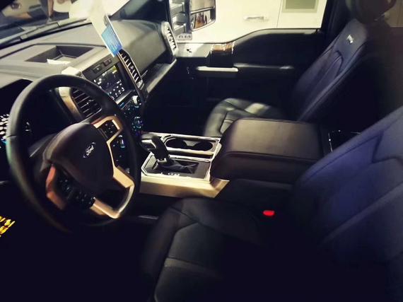 18款福特猛禽F150它的表面颇具动感,内饰奢华,配置富厚,同时兼具跑车的动力机能、越野车的全地形制霸本领和豪华轿车的乘坐恬静性,并且它的改装空间也很大。车内配备标准独特的皮革和布艺装饰的座椅,驾驶员侧的电动十向调节。这些座椅同时具备记忆功能。中央控制区搭配了触控式显示屏,其下方则是多媒体控制区及空调面板,采用旋钮+物理按键的组合。中控功能区域可分为三个小控制区,最上端为音响控制及导航控制,中间为收音机调节控制,最低端为空调及座椅加热控制。在内部空间的庞大基础上,福特也提供了非常具有舒适性与服务性的内饰配置。