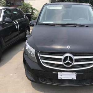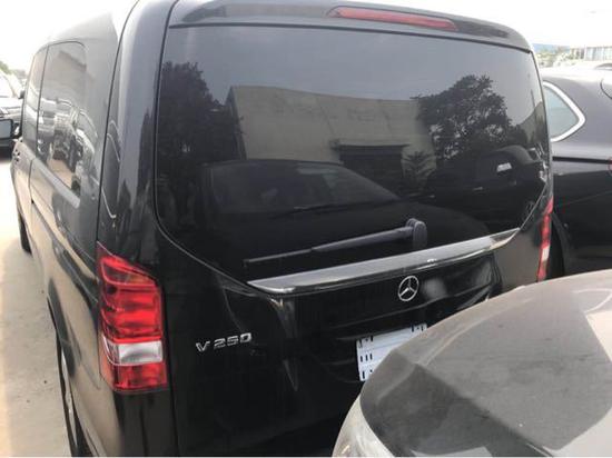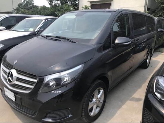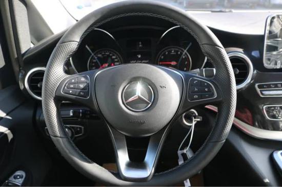 18款中东版奔驰V250(加长版5.37米):黑外黑内,2.0T,七速,8座,17轮,自动卤素灯,前后雷达,倒影,外后视镜折叠,行李架,电尾门,两侧电动门,底挂备胎,手动织物座椅,腰部支撑,command系统,定速巡航,中控小屏,蓝牙,驾驶模式选择,自动空调,6气囊,注意力提醒,自动启停,多功能方向盘带拨片,无天窗