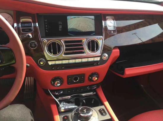 2018款劳斯莱斯古斯特加长版后排扶手上的金属装饰,看起来非常精致,储物袋是可以打开的,里面很适合放一些文件,就连前排扶手背面也有皮质包裹,摸起来触感不错,非常细致。木质的小桌板和内饰很搭,看起来非常有质感。后排乘客还可以通过后排娱乐系统来查看调节内容,功能比较强大。