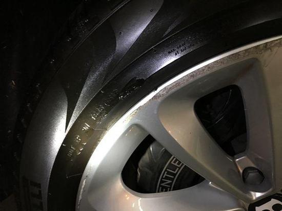 这车找点瑕疵也是挺难的,外观一圈漆面完美,没有划痕。右前轮毂划伤,胎壁也有损伤,这个算是全车外观最严重的“外伤”。