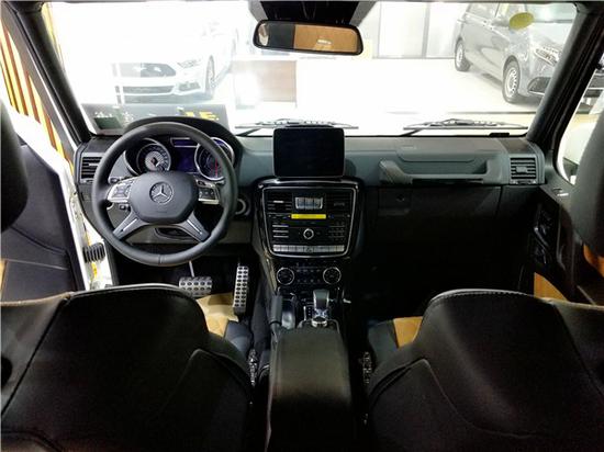 2018款奔驰G63拥有宽敞充裕的车内空间和多种座椅布局方案,能够充分满足您对空间自由度的要求。中控台多处均采用碳纤维材料覆盖,带彩色TFT显示屏的AMG仪表盘、AMG主菜单和单独的挡位显示器以及采用白色照明的AMG门槛。名贵的选材及精湛的内装令人拍案叫绝。