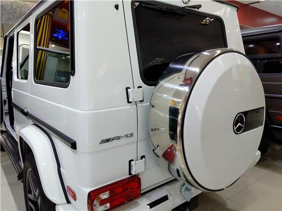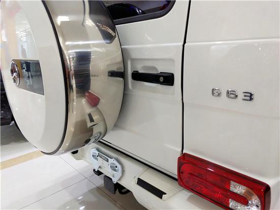 18款奔驰G63车身采用了白色金属漆进行涂装,搭配轮圈及外后视镜上多出红色线条点缀后,视觉效果更添运动色彩。值得一提的是,新车的外挂式备胎采用了亮银色设计,与车身形成了极大的反差,整体效果更添几分高贵气质。