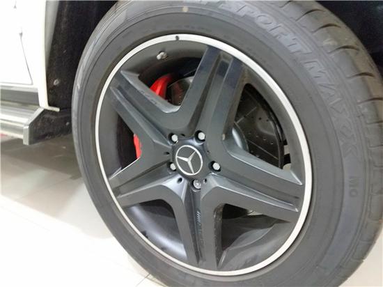 18款奔驰G63新增一组后桥,车身加长并构造出一个开放式的行李空间,轮距也因此得到涨幅明显的扩展,以保证过弯时候的稳定性。前格栅造型和21寸的轻质AMG车型专属铝合金轮毂比GL普通版车型更加抢眼。还配备了带彩色TFT显示屏的AMG仪表盘、AMG主菜单和单独的挡位显示器以及采用白色照明的AMG门槛。