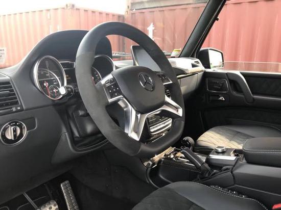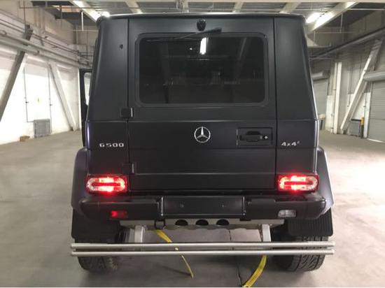 奔驰G500 4X4猛的一眼看去特别有气势,比普通的奔驰G系整整大了一个尺寸。全车基本造型与普通版G级一致,车顶上还有可拆卸的碳纤维扰流板,跟戴了小帽子似的。扰流板两侧均配备LED射灯,越野中非常实用。
