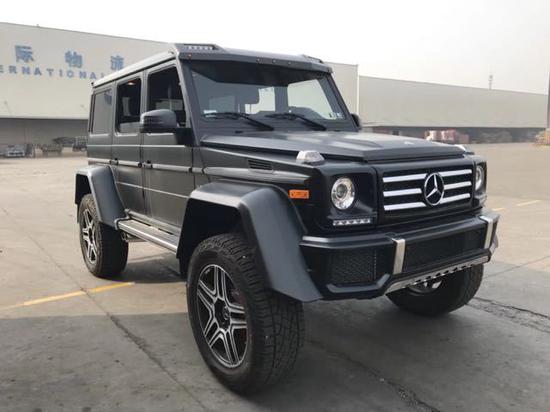 17款奔驰G5004X4²基于G500标准版打造,仍由奥地利格拉茨工厂生产。两车共用结实的梯形车架,轴距同为2850毫米。但动力系统源自新近推出的AMG G (配置|询价)T,底盘借鉴了G63 AMG6×6的设计,此外还对车身进行了一些修改。奔驰G5004X4² 不过外观并不低调,前保险杠被分成了三个方形的进气口。奔驰G5004X4²轮圈则装上了和AMG款式相近的大五星款式,并采用黑色设计,加上整个黑色的车身,流露出霸气的气质。