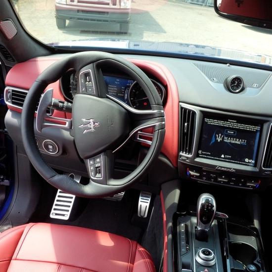 玛莎拉蒂Levante的内饰设计将运动与豪华做出了很好的结合,三辐式方向盘设计的动感十足,且运用了适当的镀铬装饰;仪表盘上与中控台的两块电子屏幕很好的提升了车内的豪华感与科技感。玛莎拉蒂Levante美版3.0T