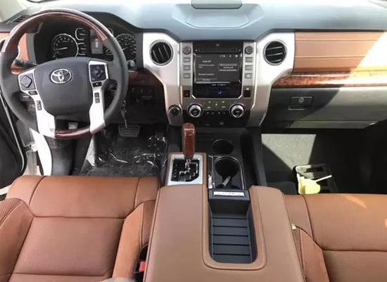 18款丰田坦途内饰做工十分精致,真皮座椅、桃木的方向盘、动感仪表盘,在简约的同时,透露着稳重与典雅的气息。仪表盘几乎颠覆了之前的全部设计,造型极为新颖。换挡杆造型没有变化,中央扶手箱的凹槽可以存放手机等杂物。