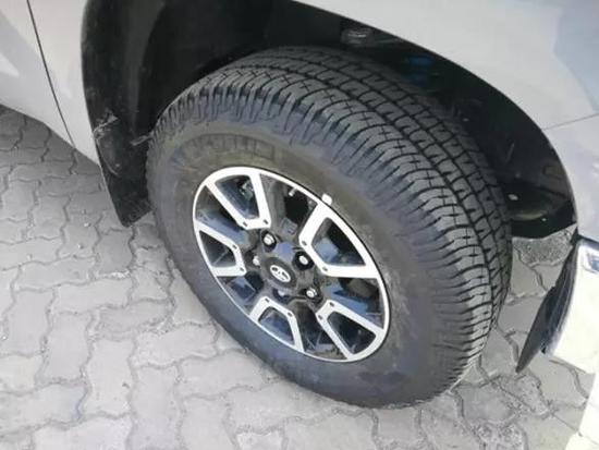 18款丰田坦途1794是20寸轮毂,轮胎与车身中间的距离之大,如同有底盘升降的越野车型,很适合越野。丰田坦途这款车是一款男人味十足的车。试想一下,你如果站在这款车身旁,映衬着后面高大的车身,大气粗犷的线条,将会是怎样一种景象。其他型号轮毂是18轮毂