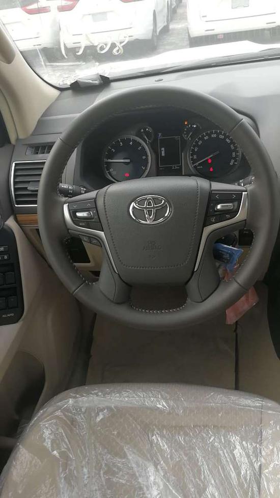 万途(天津)国际贸易有限公司:18款丰田霸道2700VX外挂 黑/米,白/米 配置:外挂 九气囊 真皮多功能方向盘。桃木内饰。豪华多功能自发光炫彩仪表盘。主副双电动座椅蓝牙。冰箱。18熏黑轮毂。天窗。后尾翼。高挂刹车灯。电动折叠后视镜。同色门把手。脚踏。行李架。双区自动空调。巡航定速。电动腰部支撑。防眩目后视镜。雾灯。熏黑氙气大灯。大灯清洗。彩条。大油箱。