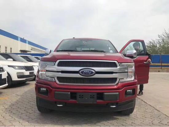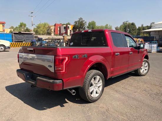 福特F150 18款 3.5T 白金版 墨西哥版现车|红/黑|2018款墨版F150白金版 全景天窗,20轮,智能卡,密码锁,远近光LED大灯,BO音响,并道辅助,遥控启动,电动脚踏,电调真皮方向盘,方向盘加热,倒车影像,后电眼,前排座椅通风加热带按摩,后座椅加热,多路况模式调节,镀铬外观套件,前雾灯,双区空调,前排座椅14向调节,电动多轮廓真皮座椅,主驾驶座椅记忆, 8寸导航屏,自动启停, 6气囊,胎压监测,