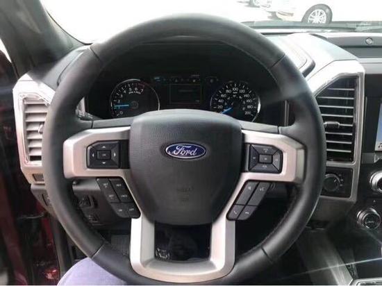 18款福特F150的内饰采用独特的中控台和门饰板面漆和真皮包裹的方向盘。中控台屏幕导航整体内饰简洁大方。所有的按钮都集中在触手可及的位置,方便驾驶操作。车内杯架和储物空间随处可见。