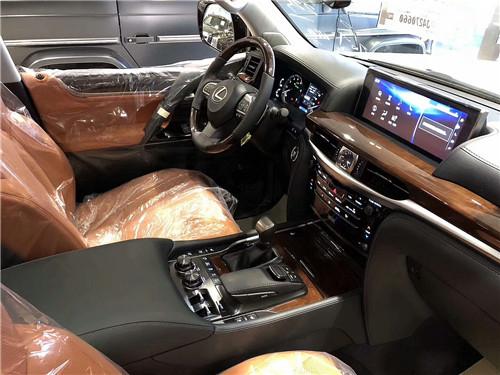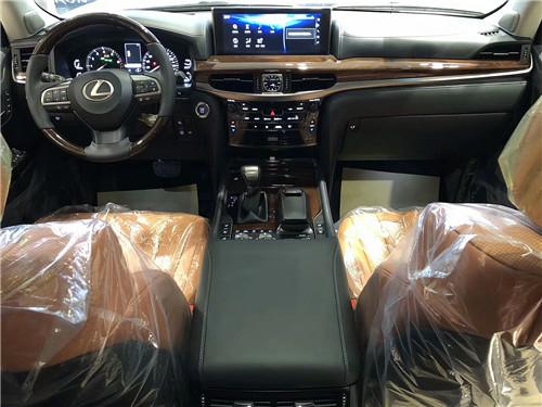 [内饰介绍]2018款雷克萨斯LX570全新设计的多功能方向盘、中控台、车门内侧均由真皮及珍贵实木内饰包裹,半苯胺高级真皮座椅给予乘客恰到好处的支撑和柔软舒适的触感。而水平式仪表盘设计,可以让驾驶者更清楚掌控车辆的位置与状态,提供道路与越野的操控感。12.3英寸超大液晶显示屏创下同级之最,分辨率达1280*480,新增的大尺寸全彩抬头显示器可分三列显示丰富信息,成为全系标配。全球首款一键式智能自动控制四区空调、后排11.6英寸双显示、19扬声器的Mark Levinson顶级音响系统均为全系标配。