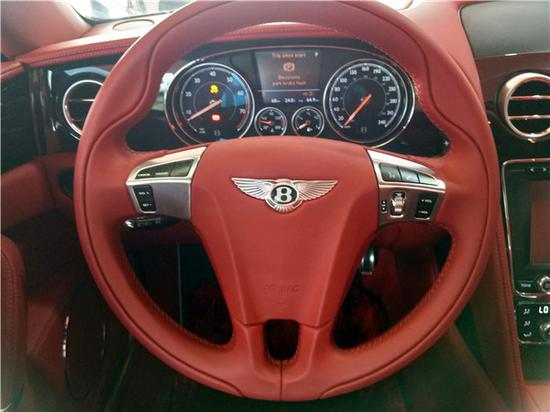 宾利飞驰V8S真皮包裹的方向盘给予驾驶者牢靠把控的感觉,在持续高速条件下容易操控、持久耐用。