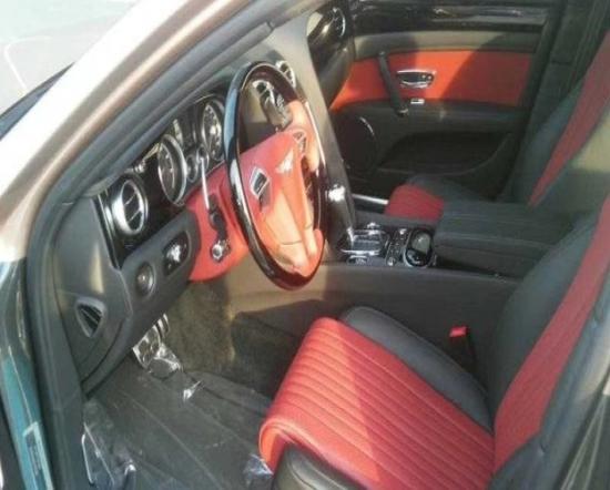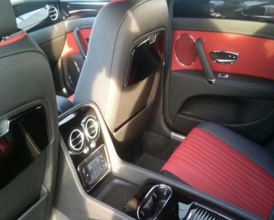 18款宾利飞驰 V8 S 玫瑰金拼磁石黑外/暗红色配鲸鱼黑配置: 红色卡钳,20轮,宾利徽章头枕刺绣,舒适包(通风按摩座椅,双扶手),全尺寸中控台(四座格局),电动全玻璃天窗,转向柱带换挡拨片,可拆卸中控台储物盒,滚花运动型换挡真皮手柄,钢琴黑装饰台,后排小桌板,3辐实木/真皮相拼方向盘,倒车影像等