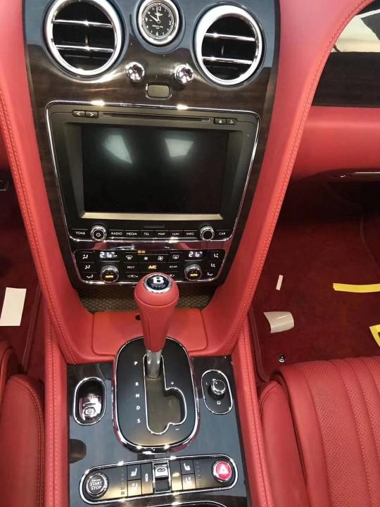 奢华装修车内自然也是宾利方式的奢华装修,真皮、木材、金属装饰,都是顶级的处理方式。据称,车舱内要使用10平方米的木材,需要9个小时才能完成安装。中控台的设计灵感来自于顶级瑞士自动表内精致的机械表面处理技术,名为“日内瓦波纹”。在厚度仅有0.6毫米的铝片上,从一侧到另一侧加工线形纹路。每行纹路仅有5毫米宽,借助加工角度形成真正的三维表面效果,每次加工步长窄至0.5毫米。