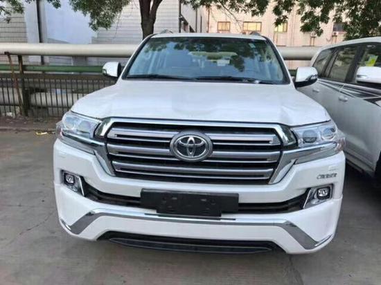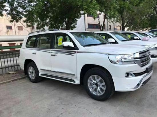兰德酷路泽4000 18款 GXR 八气 真皮限量中东现车|白/米| 配置:熏黑大灯,实心丰田标,18寸铝合金车轮,大包围,8气囊,镀铬中网,迎宾灯,前后雾灯,近光氙灯远光卤素大灯带清洗,LED日行灯,大灯高度调节,无钥匙进入,远程遥控启动,车侧航空踏板,防擦条,车顶银色行李架,电动可调后视镜带折叠,真皮座椅,主副驾驶座8向电调,桃木内饰,CD播放器,桃木手动调节多功能方向盘,胎压监测,定速巡航,中央差速器,弯道辅助系统,蠕行模式,一键启动,冰箱,电动天窗,电动车窗,自动空调,后排制冷开关,三排对折座椅,高位刹车灯,尾翼,胎压监测,拖车钩,底挂备胎。