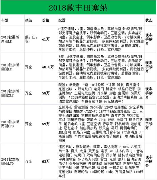 降价促销:万途(天津)国际贸易有限公司新到一批2018款丰田塞纳3.5L,颜色齐全,配置多样可选,近日受调整关税影响,加之淡季销售低迷,降价促销,史前最低。