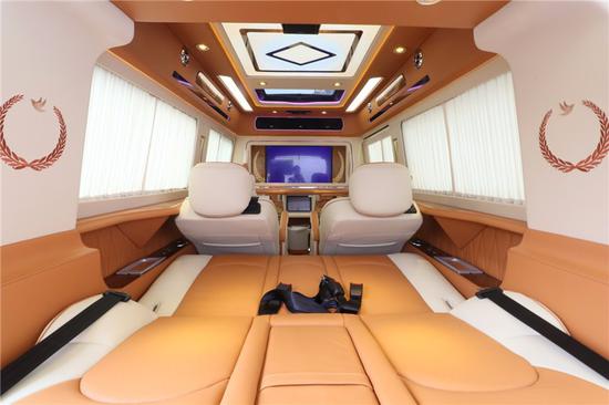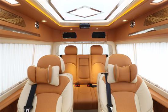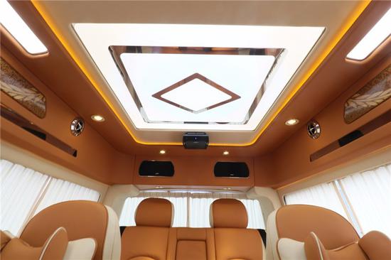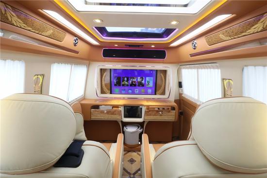 乘客舱改装,打造私人家庭影院般的效果,32寸全隔断升降高清电视,高保真套装音响一套,让后排的乘客坐在豪华宽大舒适的航空座椅上尽情的享受。车内小空间营造出来的氛围感更加强烈,在九宫格灯光,以及车内氛围灯的映照下格外温馨舒适!
