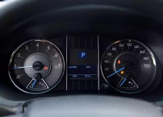 18款丰田穿越者2700仪表盘中间有一块TFT彩色液晶屏,指针也采用了蓝色设计,比普拉多等车型显得不是那么老派。