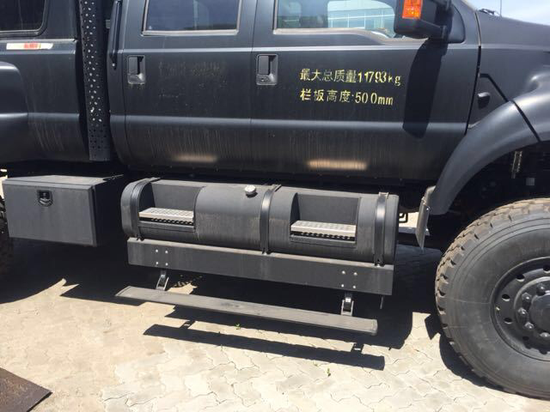 福特F650新车来袭,F650是福特旗下的一款重型皮卡,搭载的是6.7L的V10发动机,最大马力是325hp,最大输出功率239kw,最大扭矩是800Nm。福特F650车头巨大的保险杠、进气格栅占据了前脸的大部分面积,加上装置在轮拱罩上的前大灯,使整车前脸局部拥有了很强的冲击感,形如猛兽普通。车子尺寸分别是:长:605米、宽:2.69米、高:2.86米;光轮胎高度就是1.11米,这些数据无一不是彰显出这款F650是重型皮卡!打开车门,大家会被上车脚踏深深地吸引住,左右两侧不仅是踏板更是福特F650油箱的位置,油箱下面配一个自动弹出的电动脚踏,这个可不是为了营造豪华感,车门离地1米1,油箱脚踏离地0.6米,没有它很难上车。极大的前后悬距离,为越野性能提供了最好的保证。