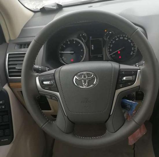 18款霸道2700VX外挂 黑/米 配置:外挂 九气囊 真皮多功能方向盘。桃木内饰。豪华多功能自发光炫彩仪表盘。主副双电动座椅蓝牙。冰箱。18熏黑轮毂。天窗。后尾翼。高挂刹车灯。电动折叠后视镜。同色门把手。脚踏。行李架。双区自动空调。巡航定速。电动腰部支撑。防眩目后视镜。雾灯。熏黑氙气大灯。大灯清洗。彩条。大油箱